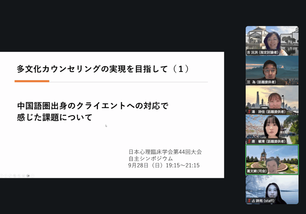「迈向多文化心理咨询的实现-从中国来访者的咨询中感受到的课题-」的主题论坛